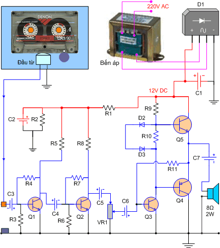 2. Sơ đồ nguyên lý mạch khuếch đại Cassetle: