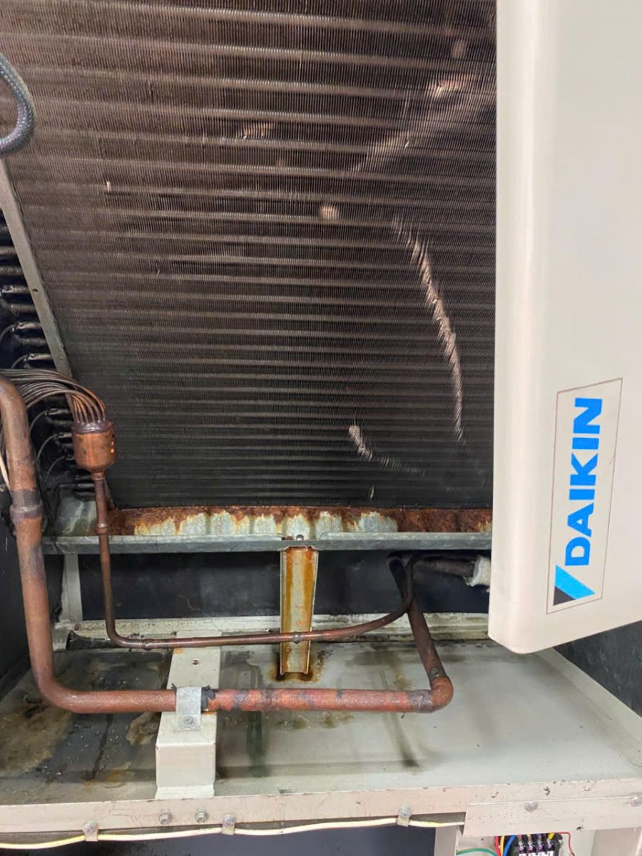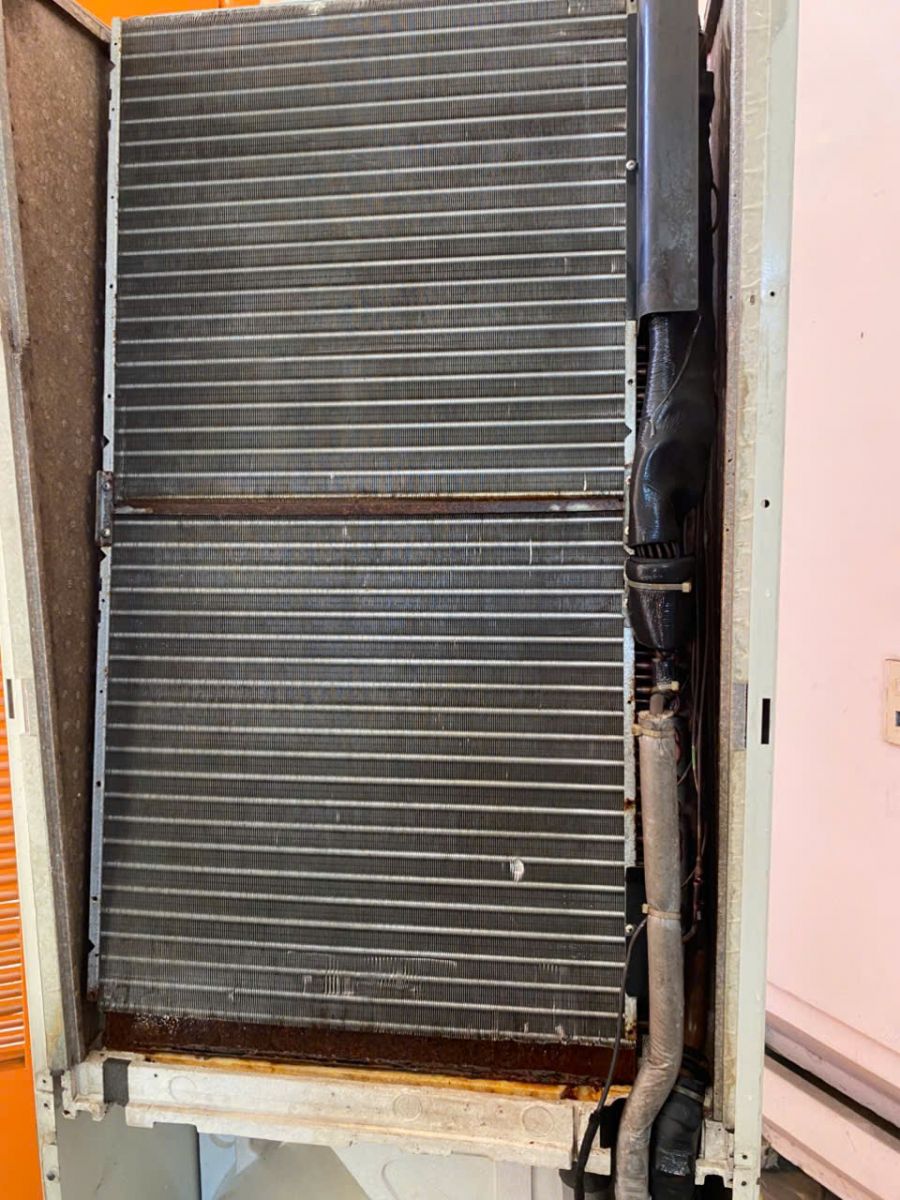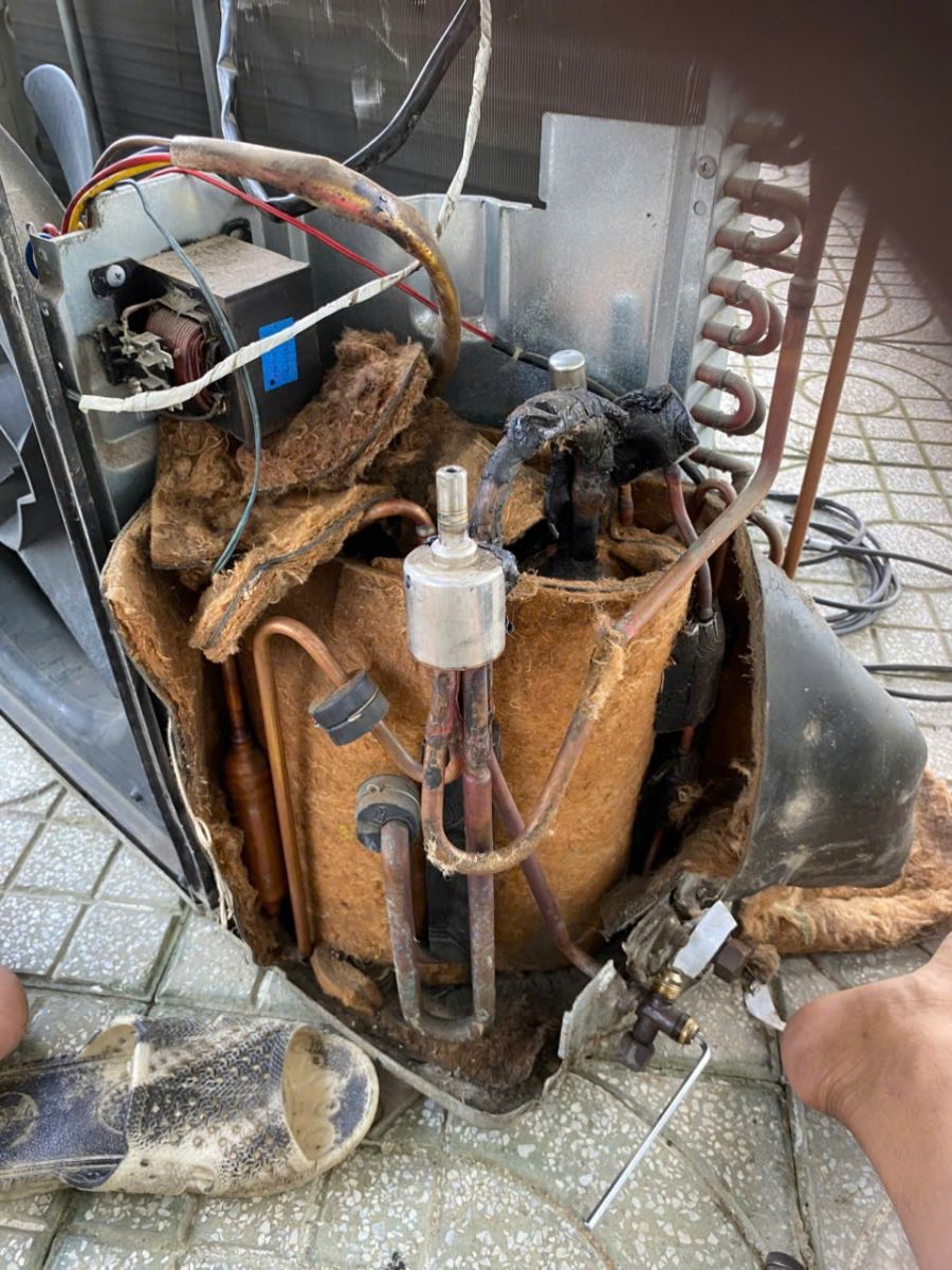 Trường hợp dàn lạnh bám bụi nhiều như này thì không thể nào có thể lạnh được. Trao đổi nhiệt độ không tốt sẽ làm máy chạy tốn nhiều mà lại không lạnh. Trong trường hợp này cần vệ sinh gấp .