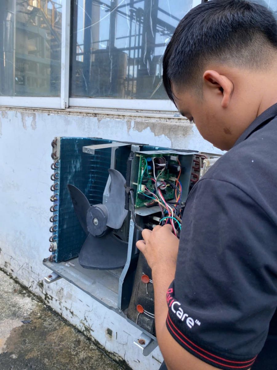 Hình ảnh học viên thử máy xem có lạnh không trước khi chở máy đi lắp cho khách. Những máy phải thử như này là máy lướt hoặc máy nội địa hoặc máy thanh lý, cần thử trước khi đi ráp cho khách. Ưu điểm của những máy này là giá thành mềm và chất lượng tốt.