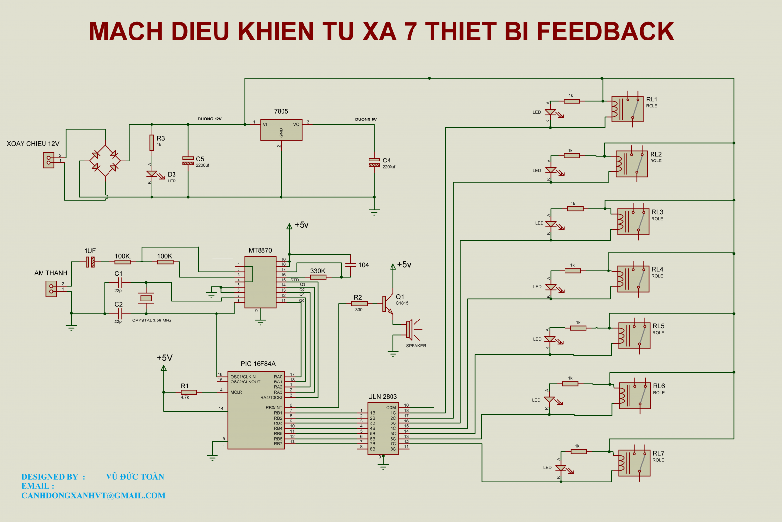 Trước khi ngâm cứu mạch này nếu bạn nào mới nhập môn thì đọc trước bài : "điều khiển từ xa bằng điện thoại 1 ngõ ra " để các bạn có kiến thức nền như vậy thì sẽ dễ tiếp cận hơn, chứ nếu vào ngay mạch 7 ngõ ra như này e sẽ dễ bị ngộp các bạn ạ