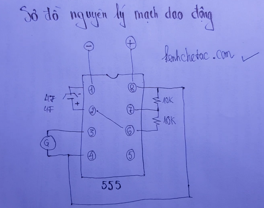 Đây là sơ đồ nguyên lý của mạch dao động sử dụng ic 555, bạn nào không rõ cách làm thì theo dõi trong video này nhé !
